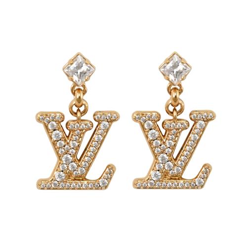 Louis Vuitton LV M01844 Lady LV 經典LOGO水鑽墜飾針式耳環.金