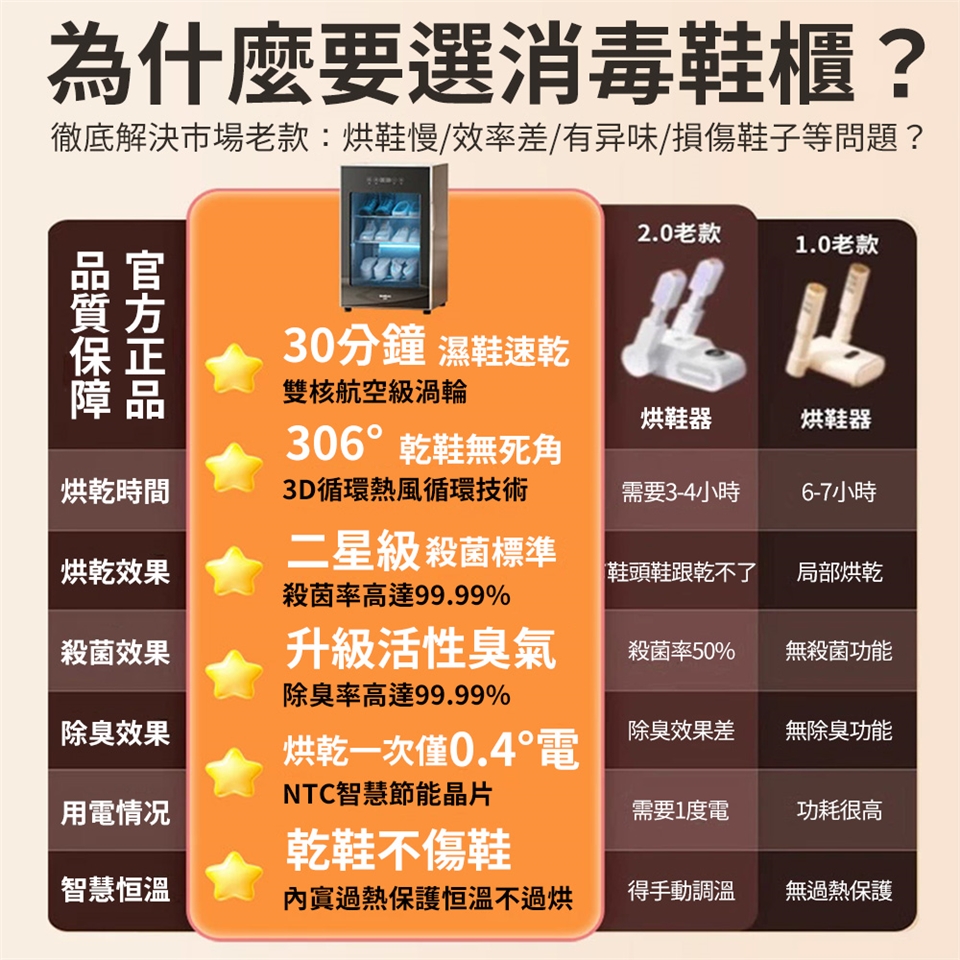 烘乾溫度:65°低溫循環不傷鞋
