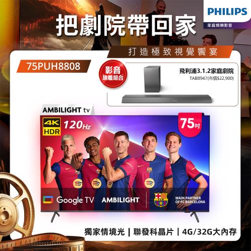 Philips 飛利浦 75吋4K 120hz Google TV智慧聯網液晶顯示器(75PUH8808)