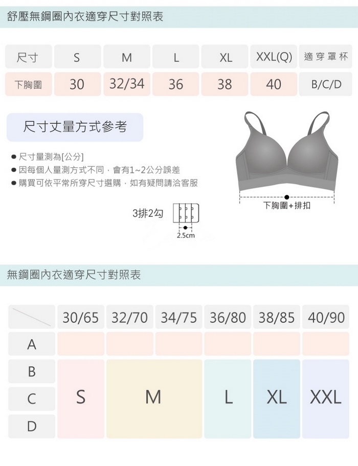 5.無鋼圈設計+一字型美背 舒適全面升級。