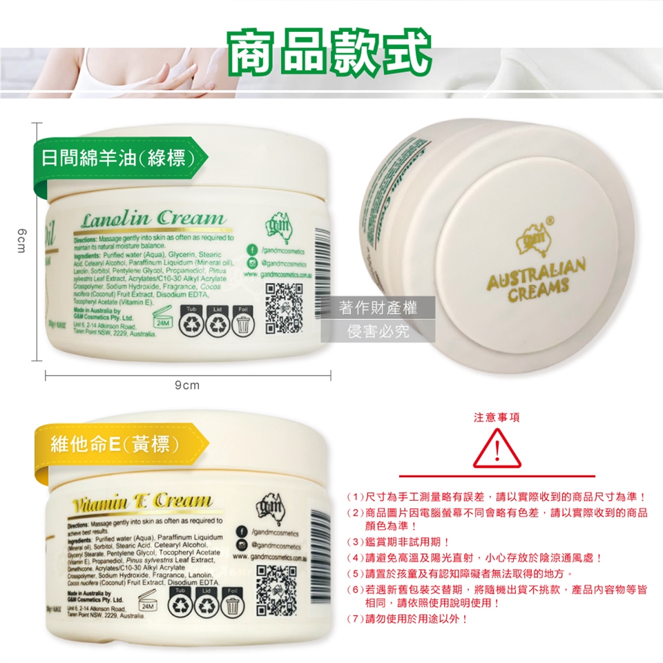 ●款式:日間綿羊油(綠標)、維他命E(黃標)