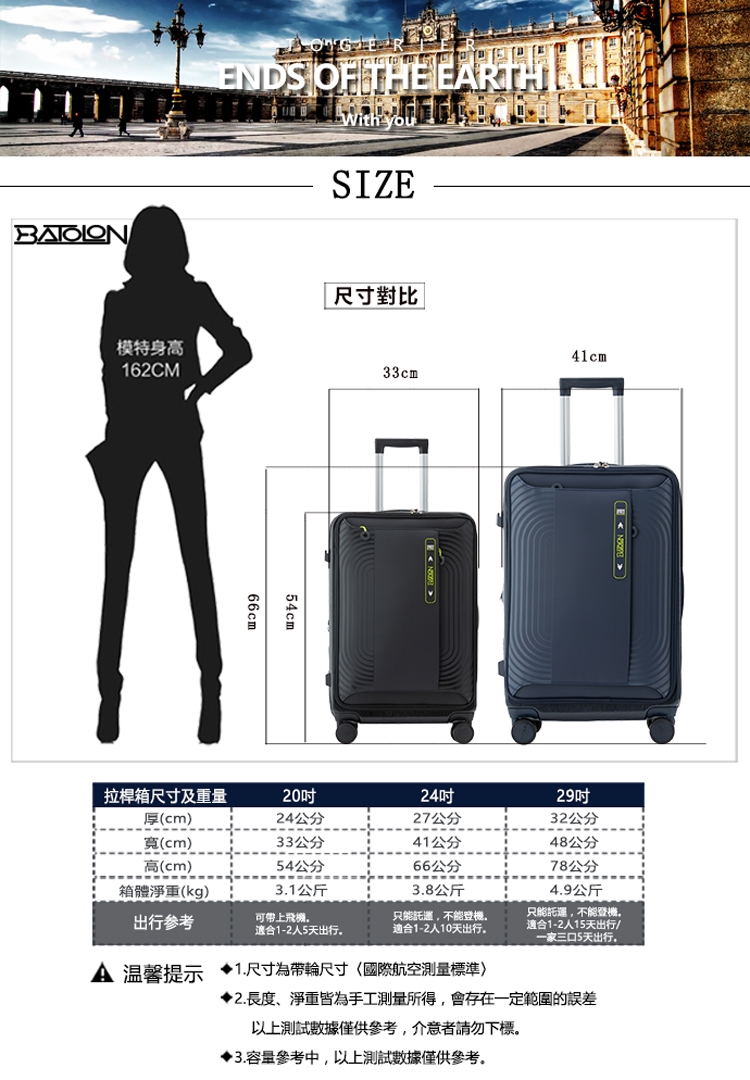 ※ 請勿用拉桿將箱子提起,提起箱子時請用上方或側面的把手;拉桿適用於配合輪子拖行時使用。