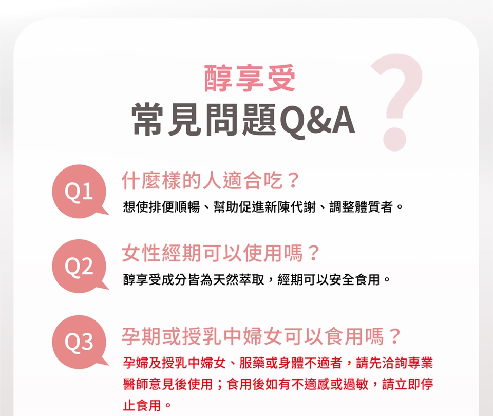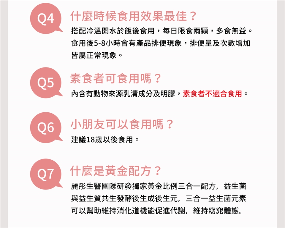 食用後5-8小時會有產氣排便現象,排便量及次數的增加屬正常現象,若造成不適請停止使用。