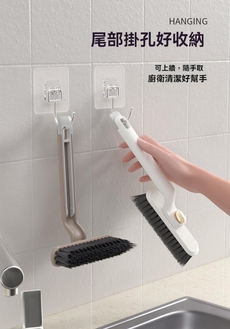 多功能刷鏟夾3合1硬毛可旋轉清潔刷 浴室瓷磚無死角縫隙刷 好掛好收納 2入(多色可選)