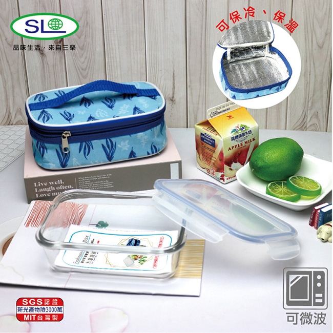 材質:保鮮盒上蓋-聚丙烯PP,保鮮盒本體-玻璃,提袋-牛津布+鋁箔保溫棉