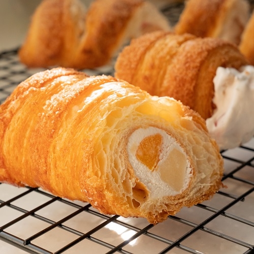 ★水果奶霜: 夾心是清爽奶霜和綜合水果丁,灑滿肉桂糖的酥脆外殼搭配滑順內餡,雙重口感令人著迷!