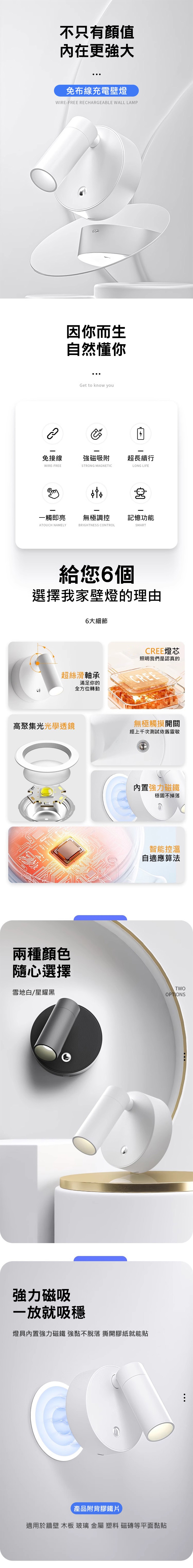 別擔心,這款磁吸壁燈為你解決照明需求,免打孔隨放隨用,讓每個角落都能隨時亮起