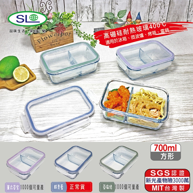 SL 分隔耐熱玻璃便當盒-群青藍720ml R-1700-1 台灣製