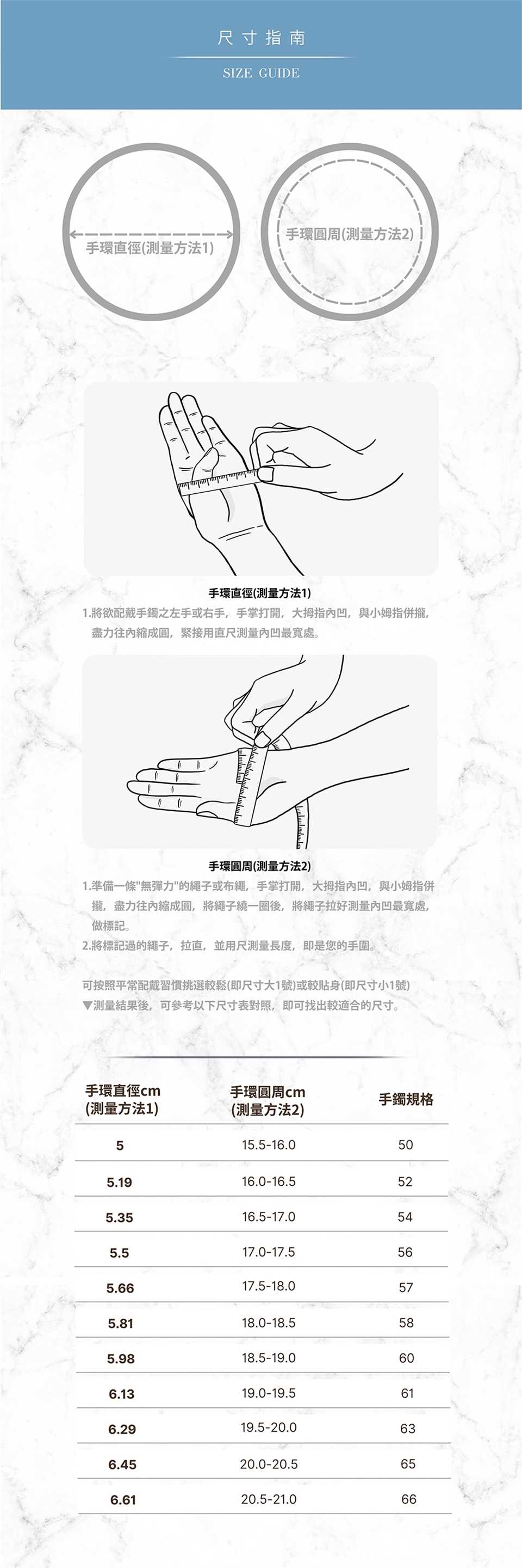 | 手環尺寸(公厘) | 重量(錢) |