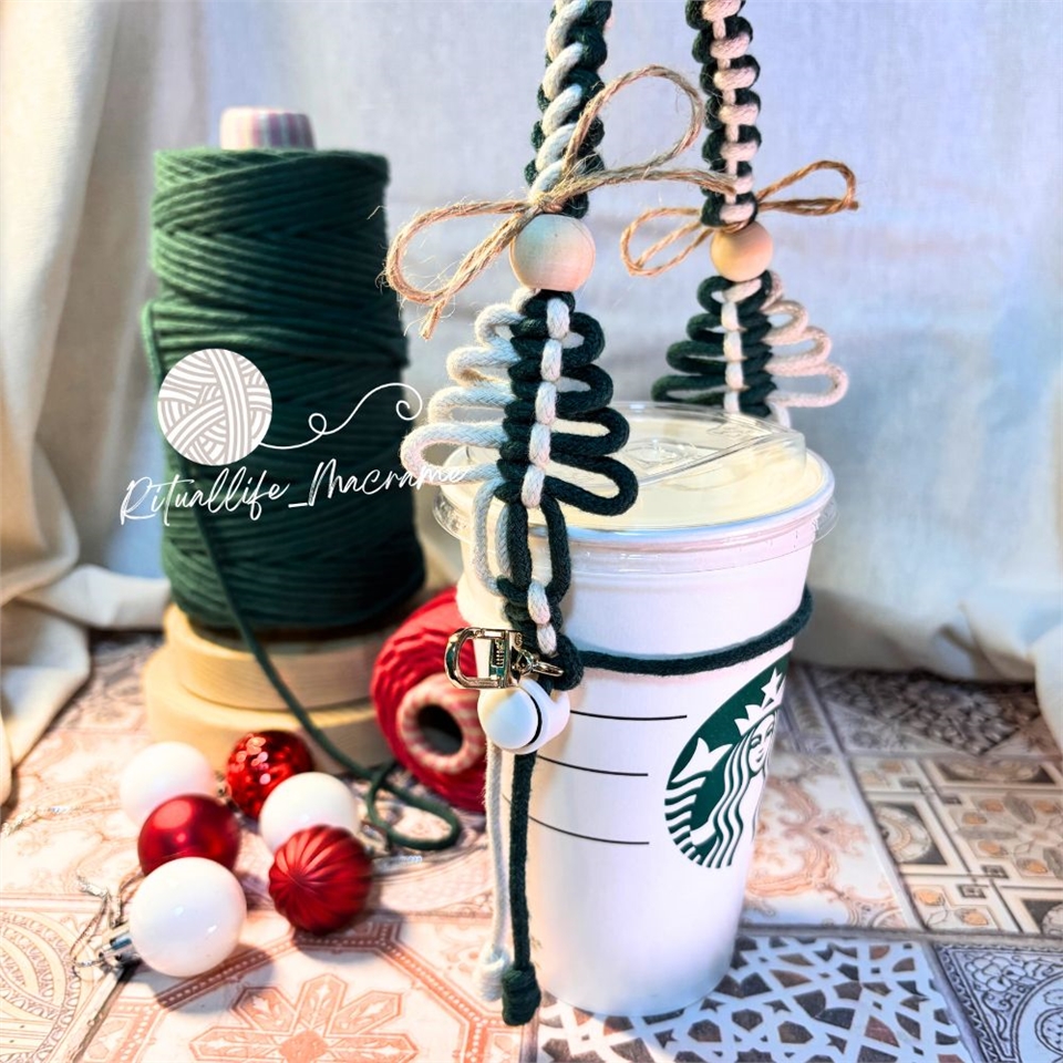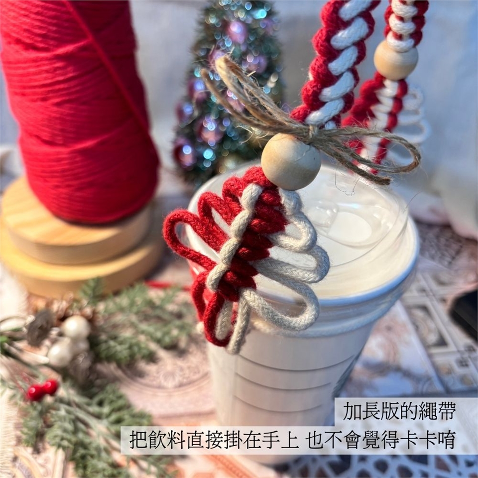 3.兩條繩子中間套入飲料杯口