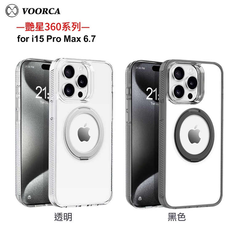 VOORCA for iPhone 15 Pro Max 6.7 豔星磁吸360度立架全透明軍規保護殼