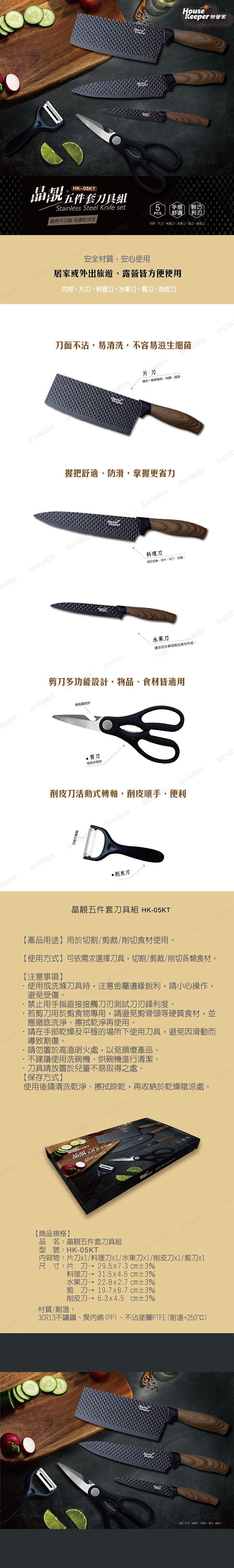 妙管家 晶靚五件套不鏽鋼刀具組(片刀+料理刀+水果刀+削皮刀+剪刀) HK-05KT