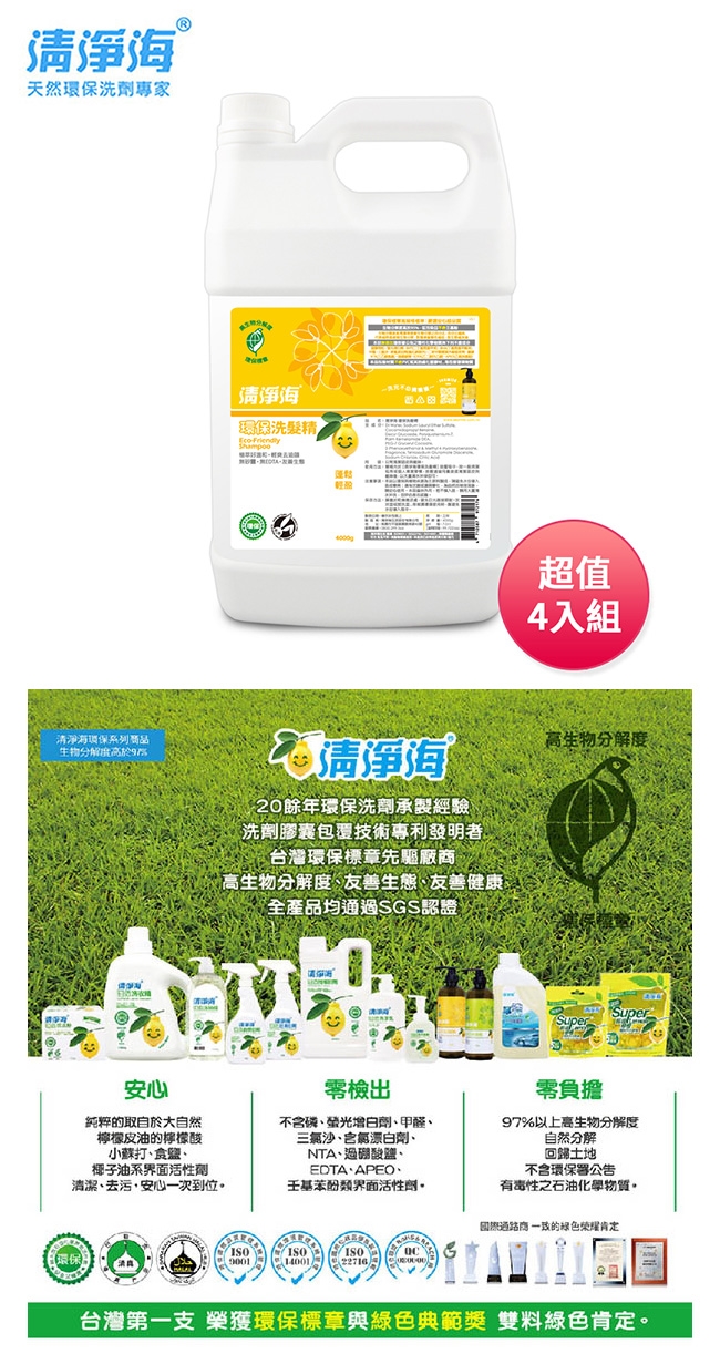 清淨海 環保洗髮精4000g超值家庭號4入組