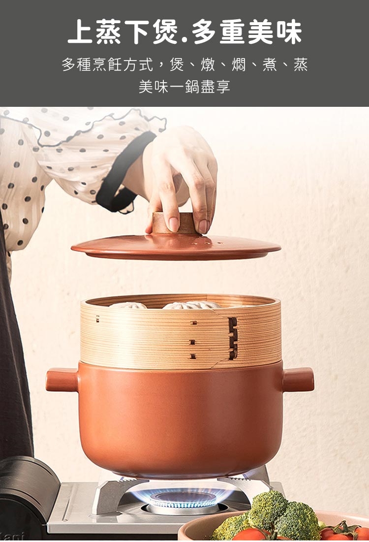 商品名稱:日式養生陶鍋/多功能蒸籠鍋/砂鍋煲湯鍋耐高溫燉鍋-福木小蒸鍋