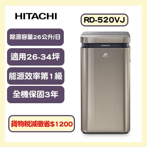 快速出貨↗HITACHI日立 一級能效26公升變頻高效除濕機 RD-520VJ (隱霧鈦)-庫