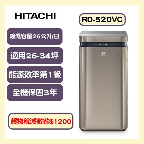 快速出貨↗HITACHI日立 一級能效26公升變頻清淨除濕機 RD-520VC(極光鈦)-庫