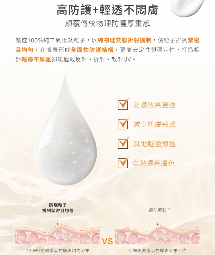 低敏物理防曬乳,獨特的100%純物理交聯折射機制,有效隔離UVA及UVB,預防曬黑及曬老,添加菸鹼醯胺(B3)、積雪草及復活草萃取,鎮靜修護肌膚,幫助減緩曝曬時的不適,實現外防禦、內修護的全方位防曬效果。純物理防曬配方,海洋友善,敏弱膚質及幼童適用。