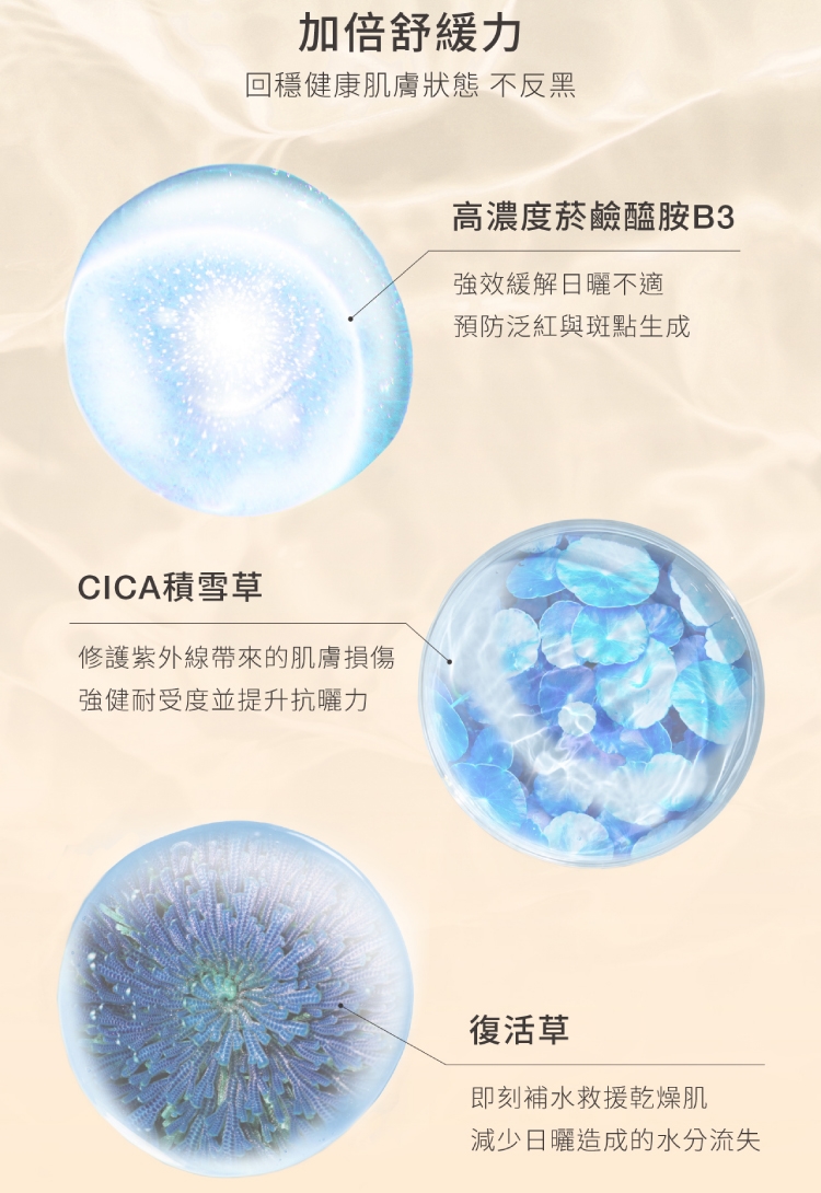 全配方不含酒精、香精、人工色素、Paraben類防腐劑,質地清爽無負擔,不悶膚、不黏膩,醫美術後、敏感肌人群也適用。