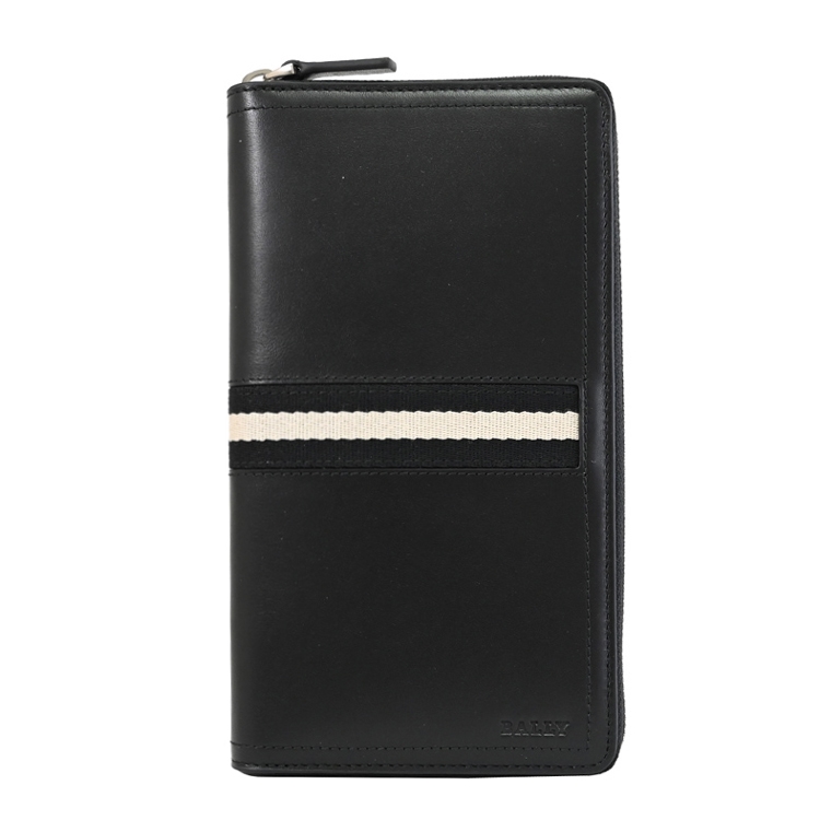 BALLY 經典黑白織帶裝飾,高質感平面牛皮加上烙印LOGO,內有2風琴夾層+1拉鍊袋+12卡片夾層+1貼袋+L型夾層,超多夾層分類,簡單又實用。