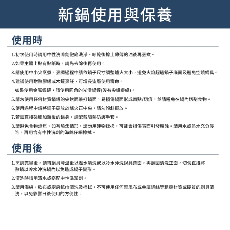請見內文圖【新鍋使用與保養】
