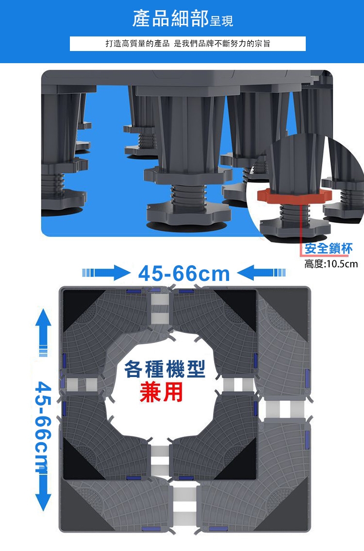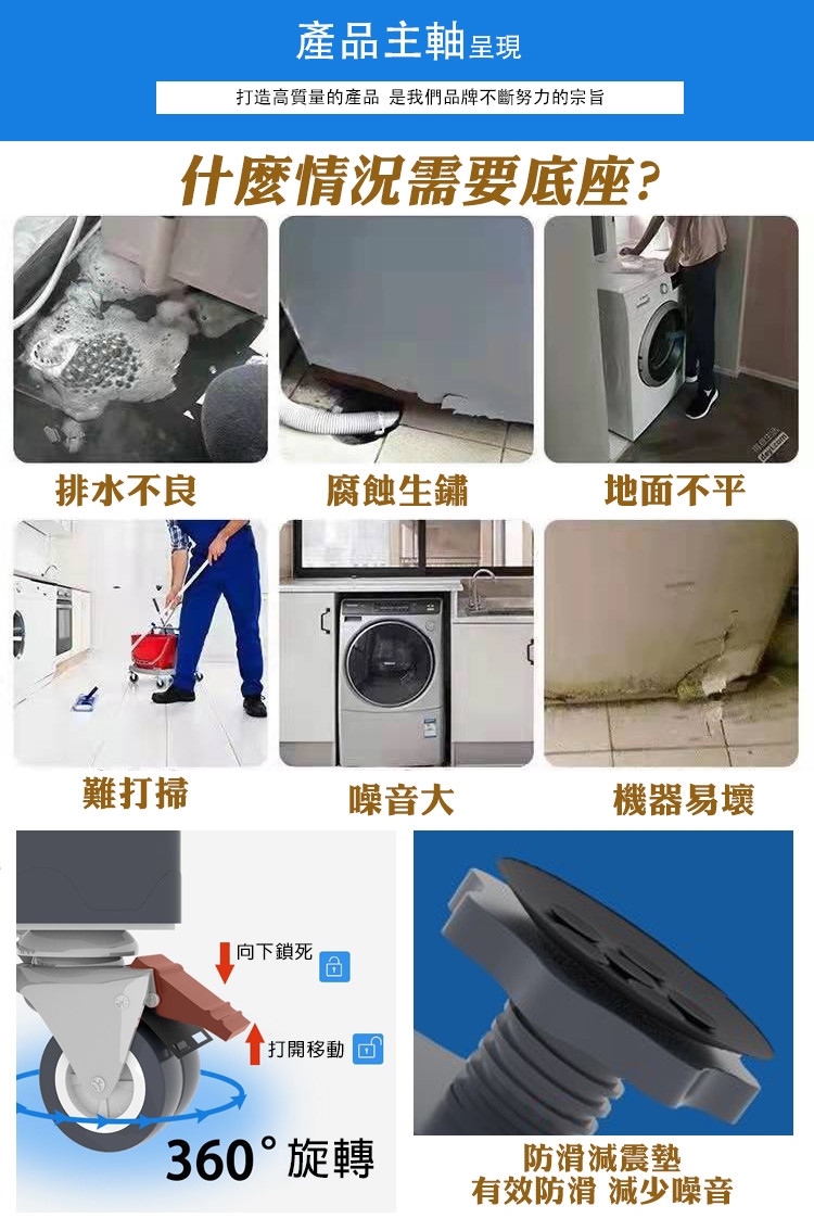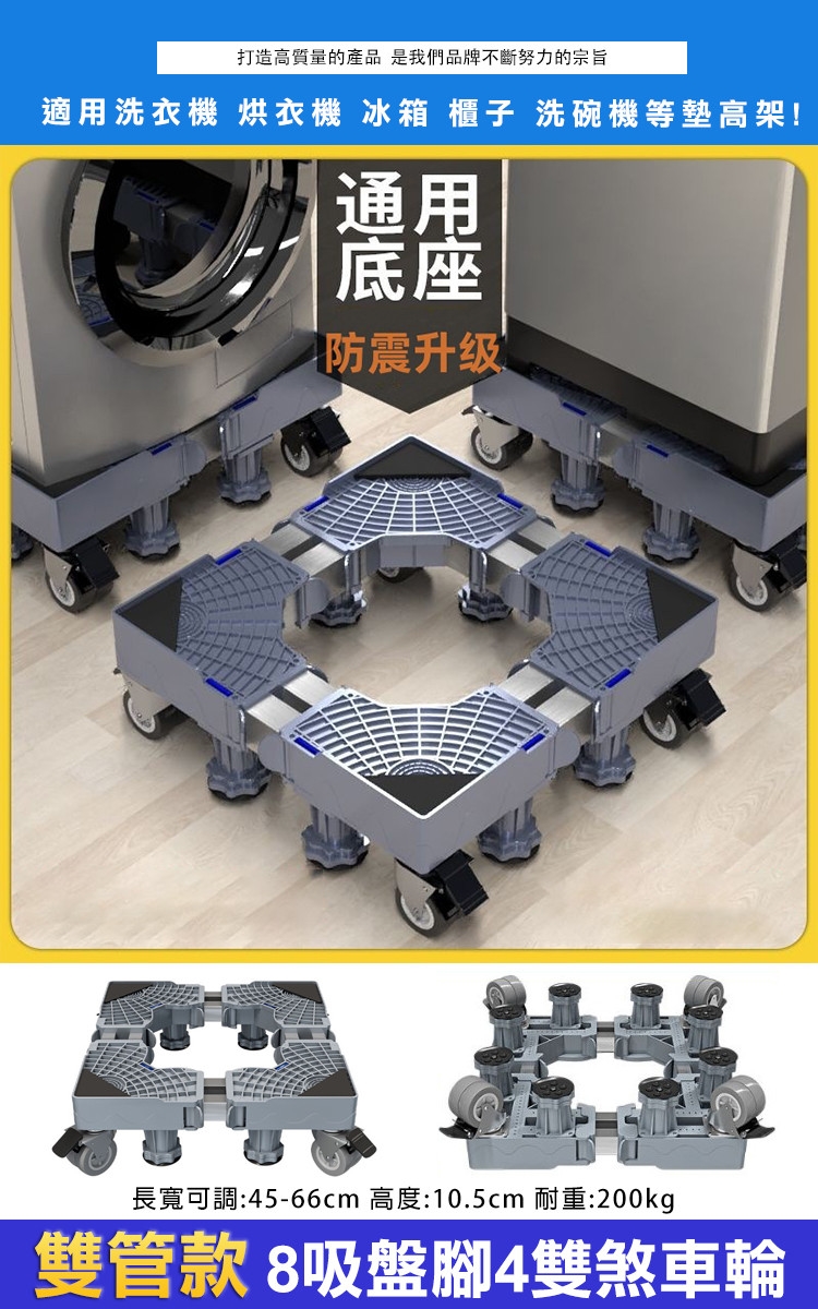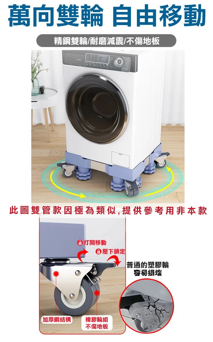 【WIDE VIEW】八腳四雙鎖輪不鏽鋼洗衣機墊高架-雙管款(可伸縮調節移動 冰箱墊高架 可調墊高架 增高架/2804)