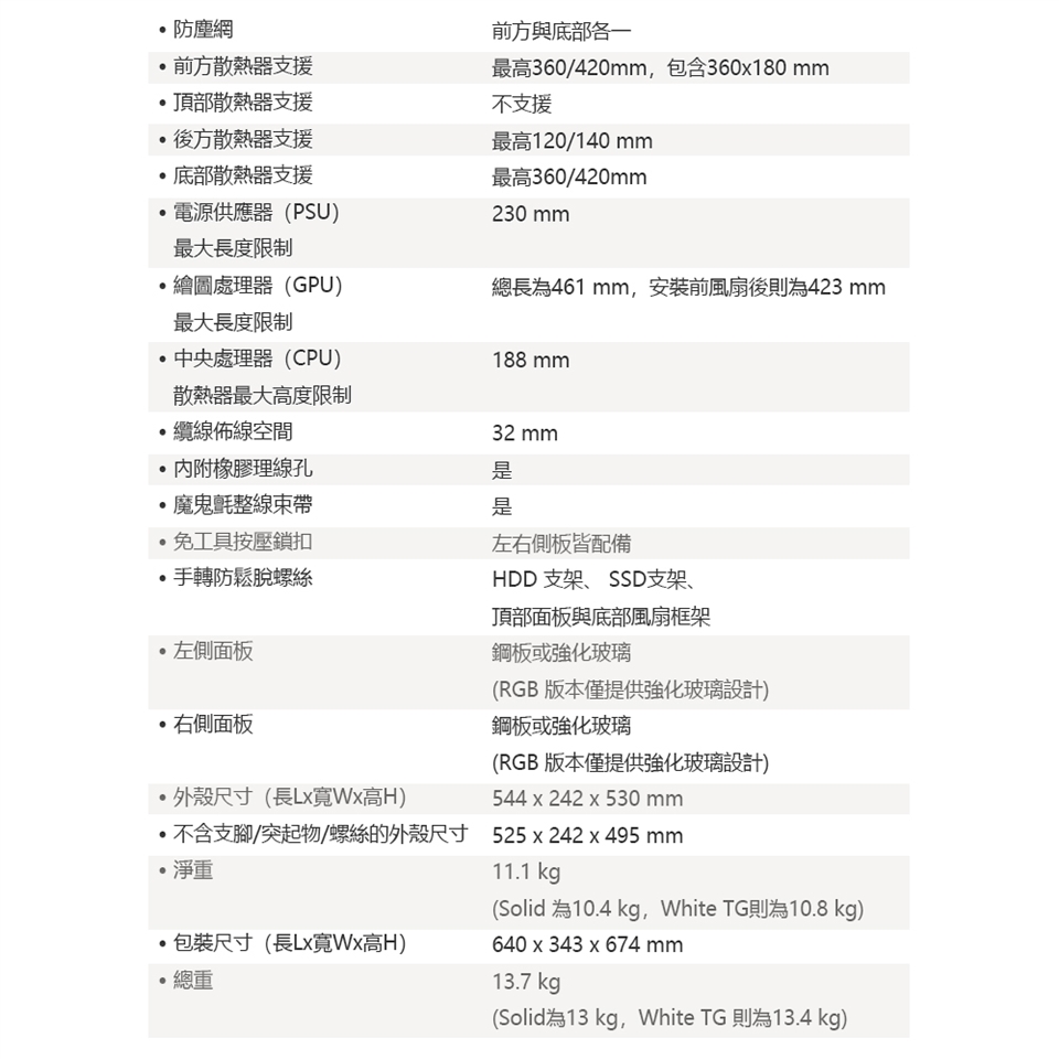 左側面板:鋼或鋼化玻璃(RGB版:僅鋼化玻璃)