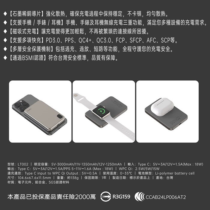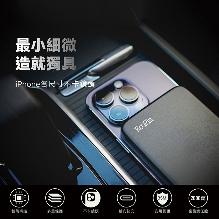 KooPin 石墨烯散熱 薄型鋁合金 磁吸MagSafe三用快充行動電源(台灣製造)