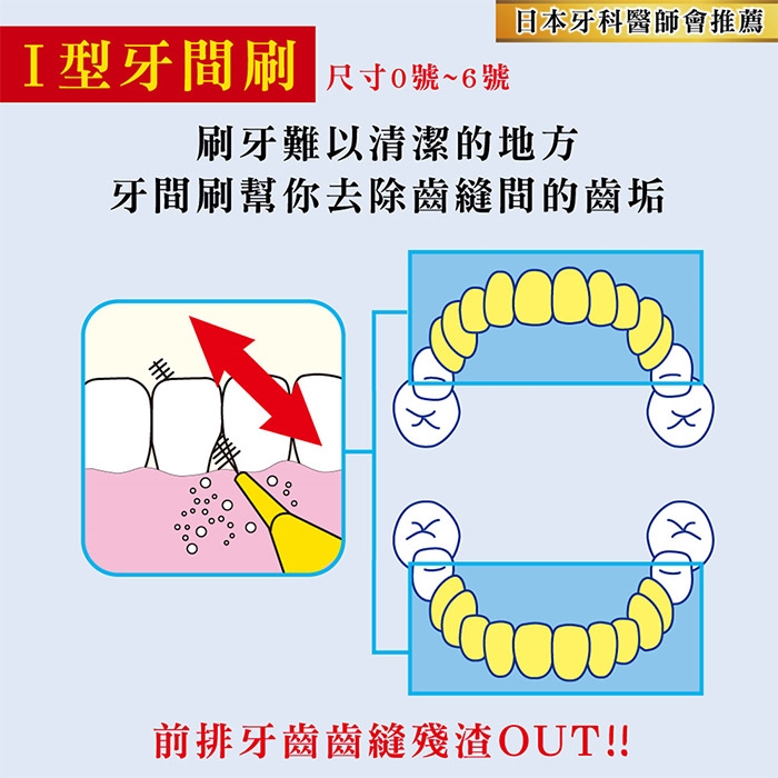 將牙間刷垂直插入齒縫並輕輕地前後移動,能清除齒縫間牙刷不易刷到的地方