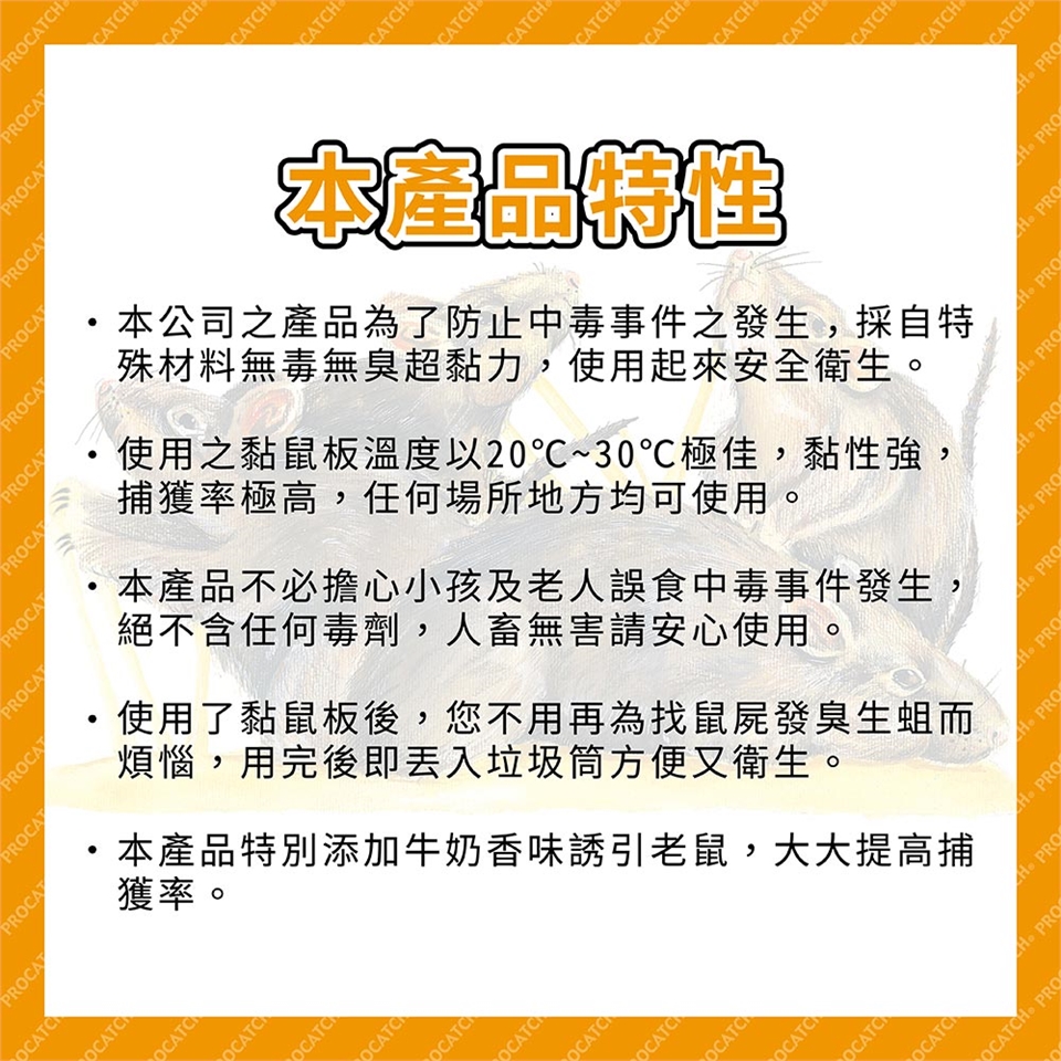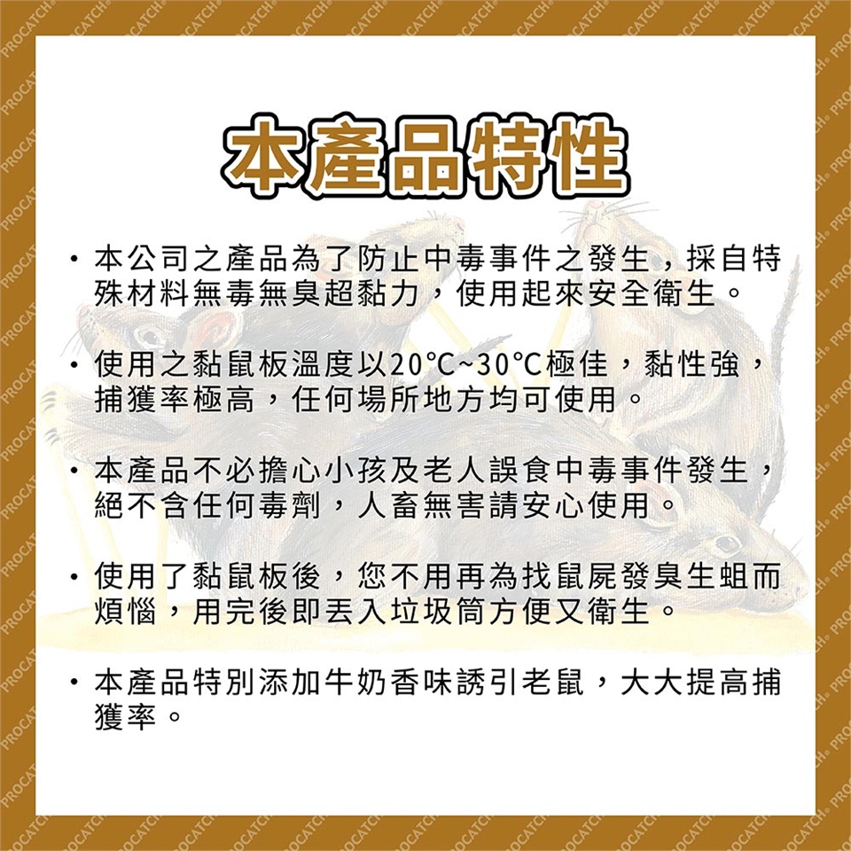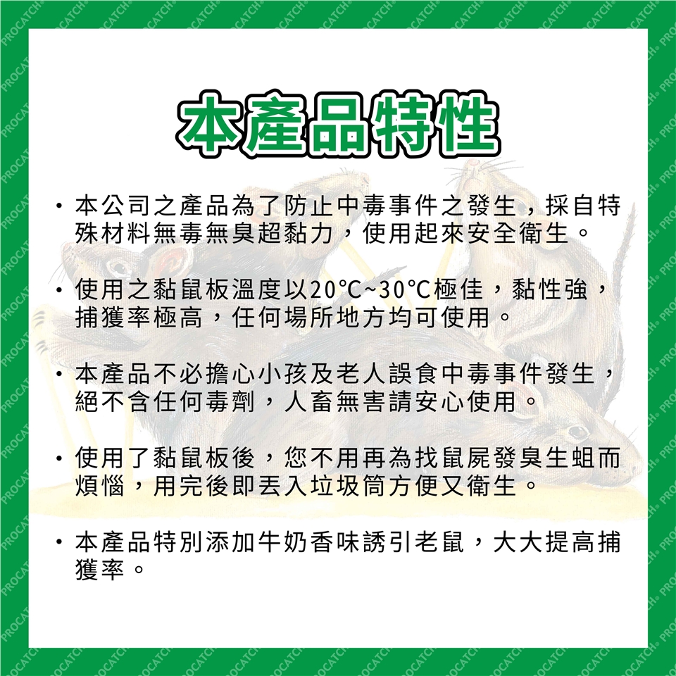 ◎ 使用之黏鼠板之溫度以15~30度C極佳,黏性強,捕獲率極高,任何場所地方均可使用。