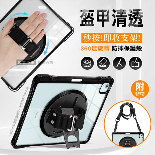 盔甲清透 2025/2024 iPad Air7/Air6 11吋 共用 四角加固PC硬蓋防摔保護殼 秒收旋轉支架 附側背帶