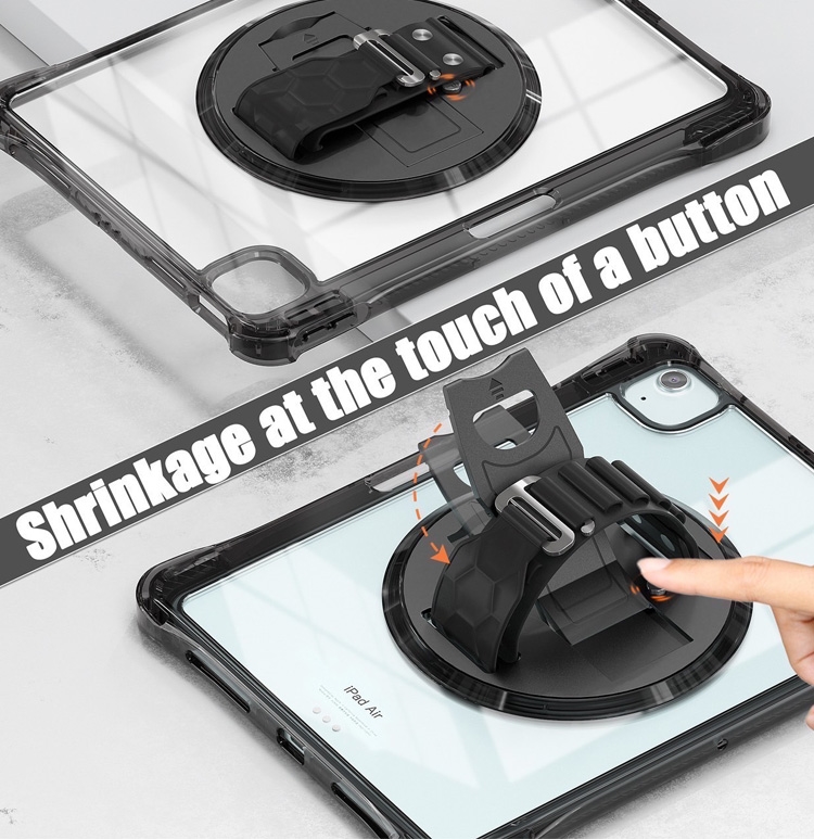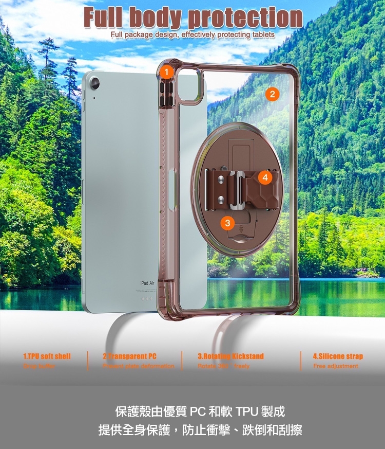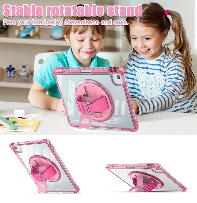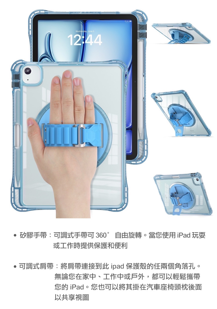 三防全透明系列 for iPad Air 13(2024) / Pro 12.9手帶+肩帶掛繩平板保護殼-帶筆槽