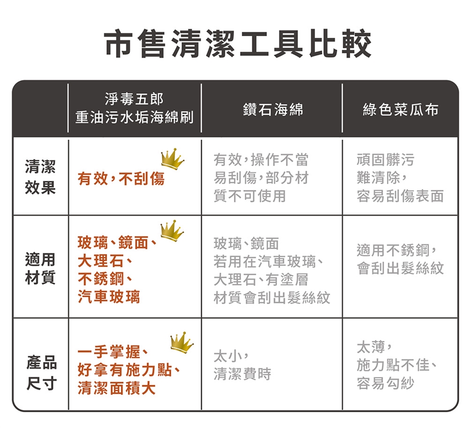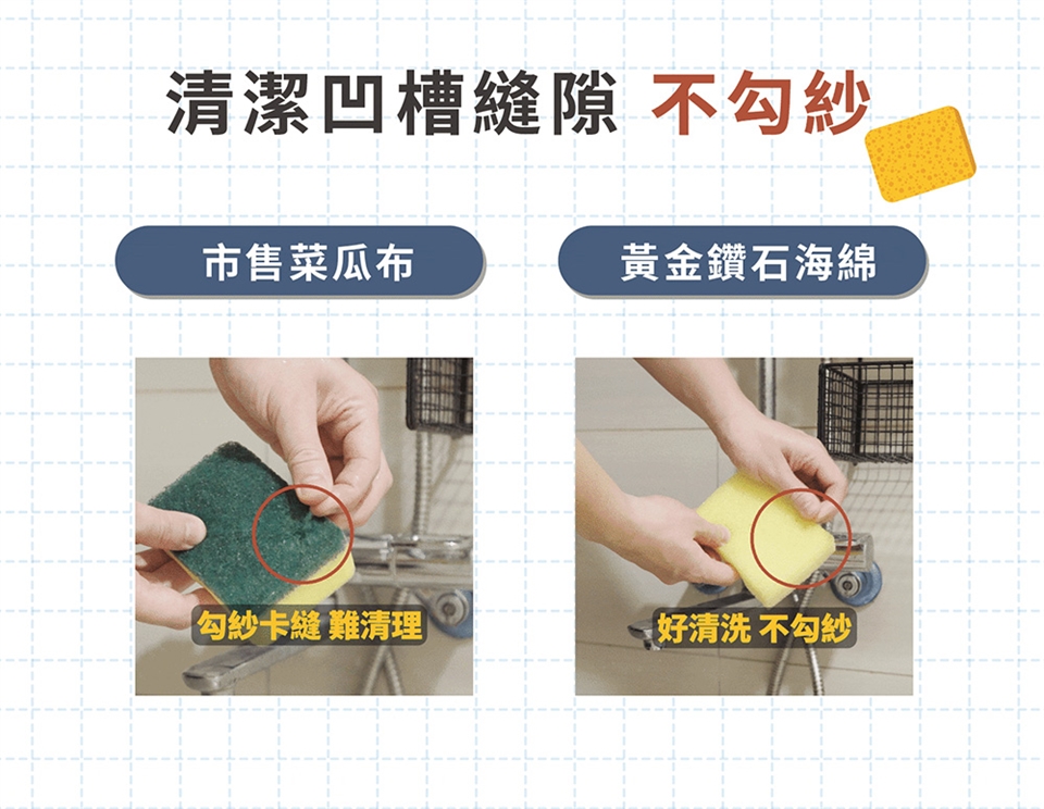 你還在徒手與水垢、油污奮鬥,找不到適合又不傷害表面的海綿刷嗎?推薦淨毒五郎 全新全網首度上市 黃金鑽石海綿,四大特色專業去垢: