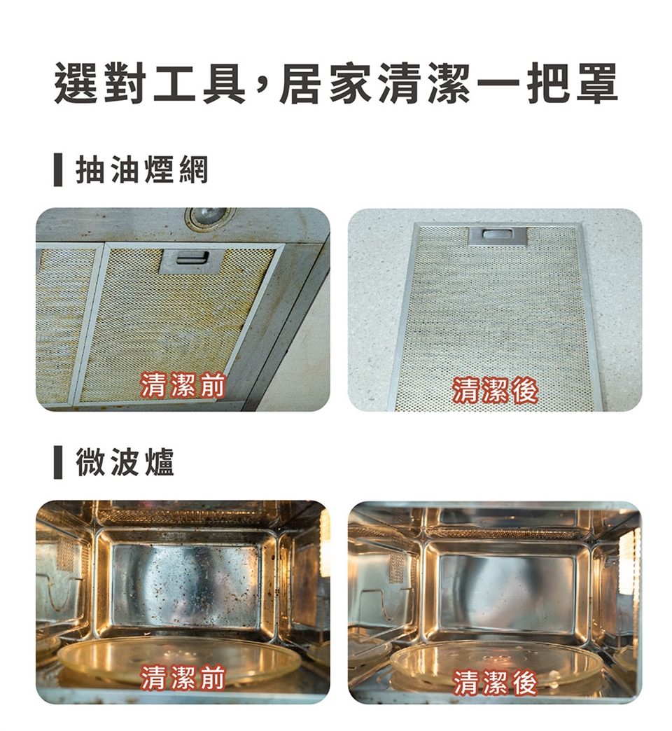 2.無法刷洗的小家電(例如烤箱內部),可以噴灑後使用濕抹布擦拭清潔哦
