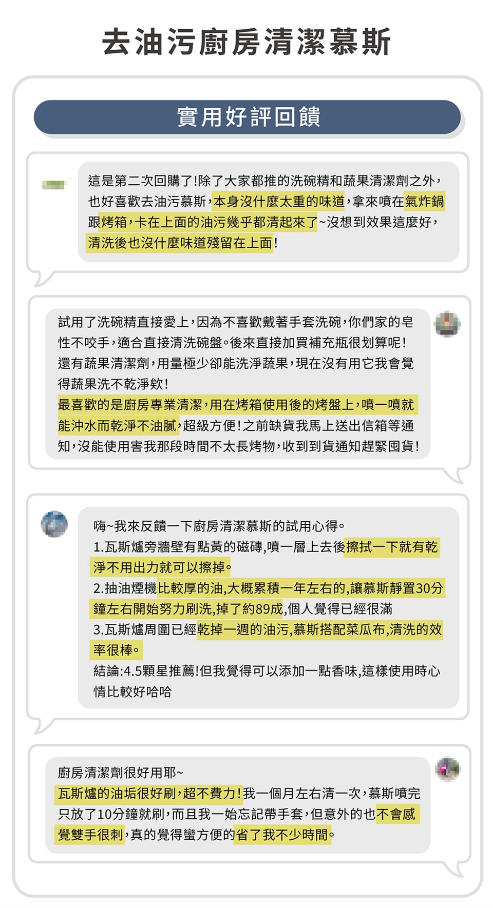 ※去油污慕斯為弱鹼性,使用前請確認欲清洗材質是否適合弱鹼性