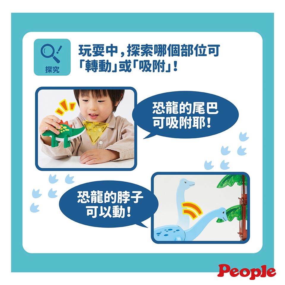 利用磁石特性,吸附、排列、堆疊過程,刺激腦力,培養邏輯思維能力,發揮創意,享受打造恐龍世界的樂趣!