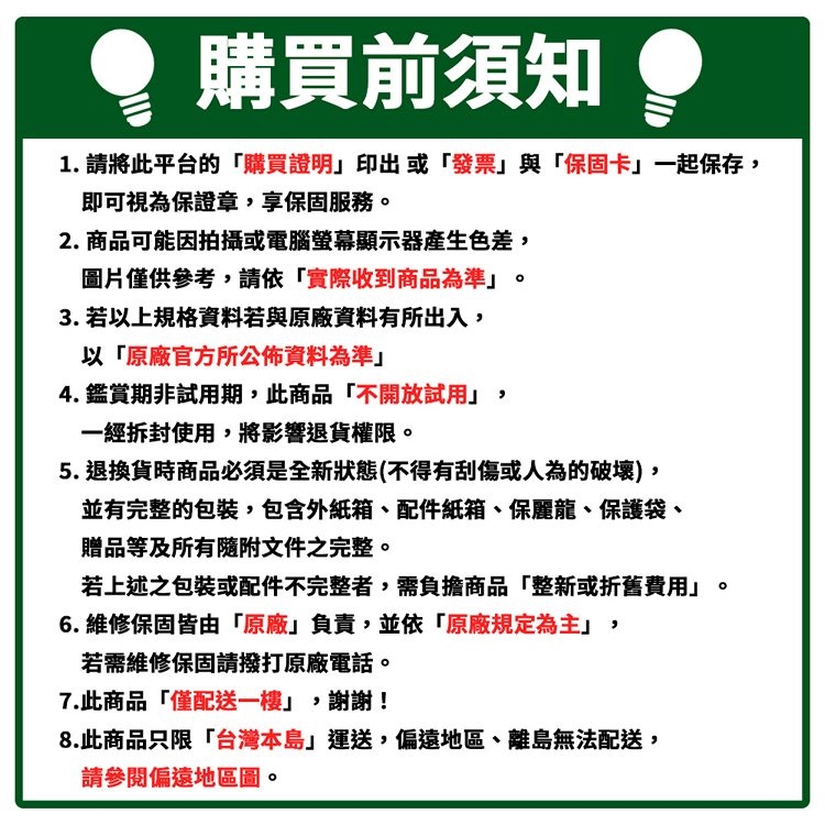 8.此商品只限「台灣本島」運送,偏遠地區、離島無法配送,
