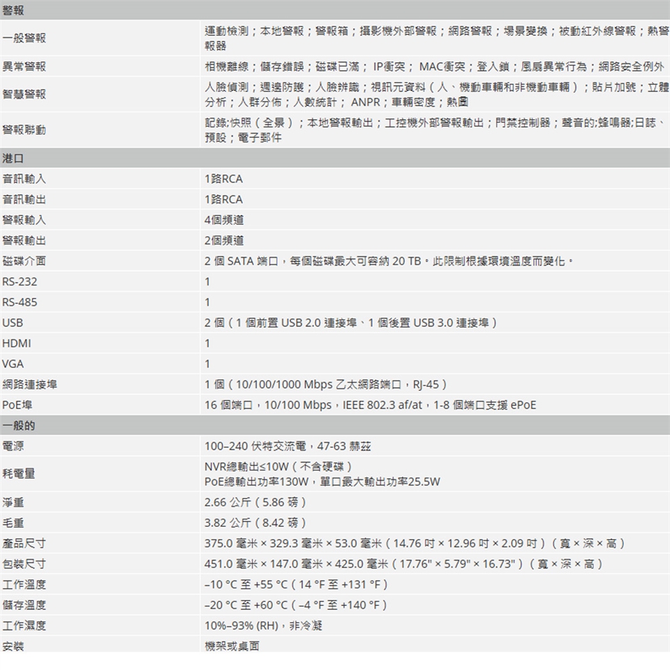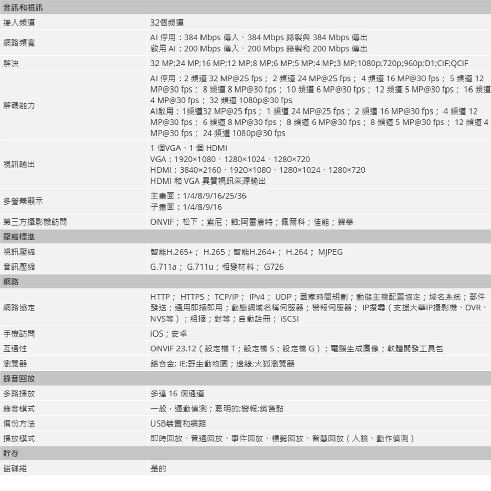 支援解析度高達 32 MP 的 IP 攝影機。
