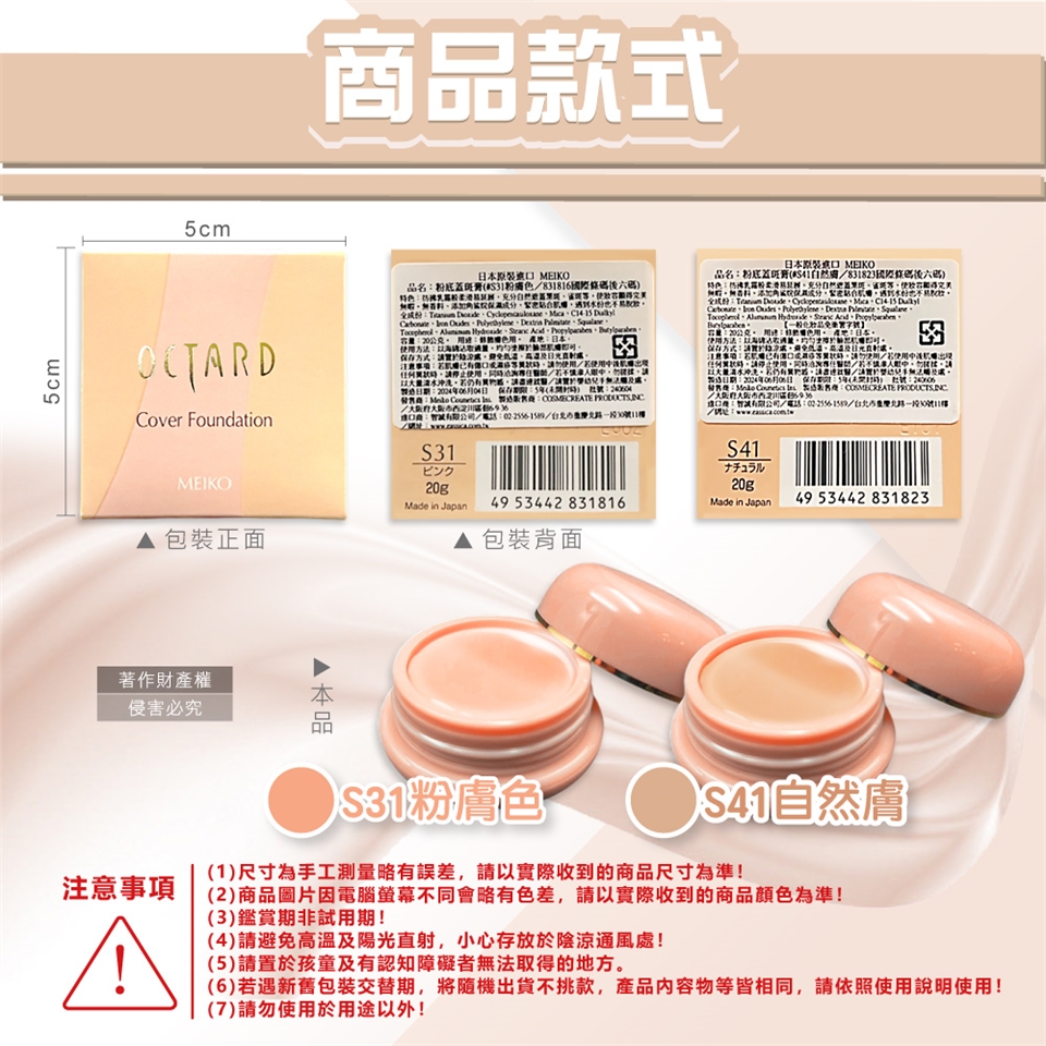 ●款式:S31粉膚色、S41自然膚。