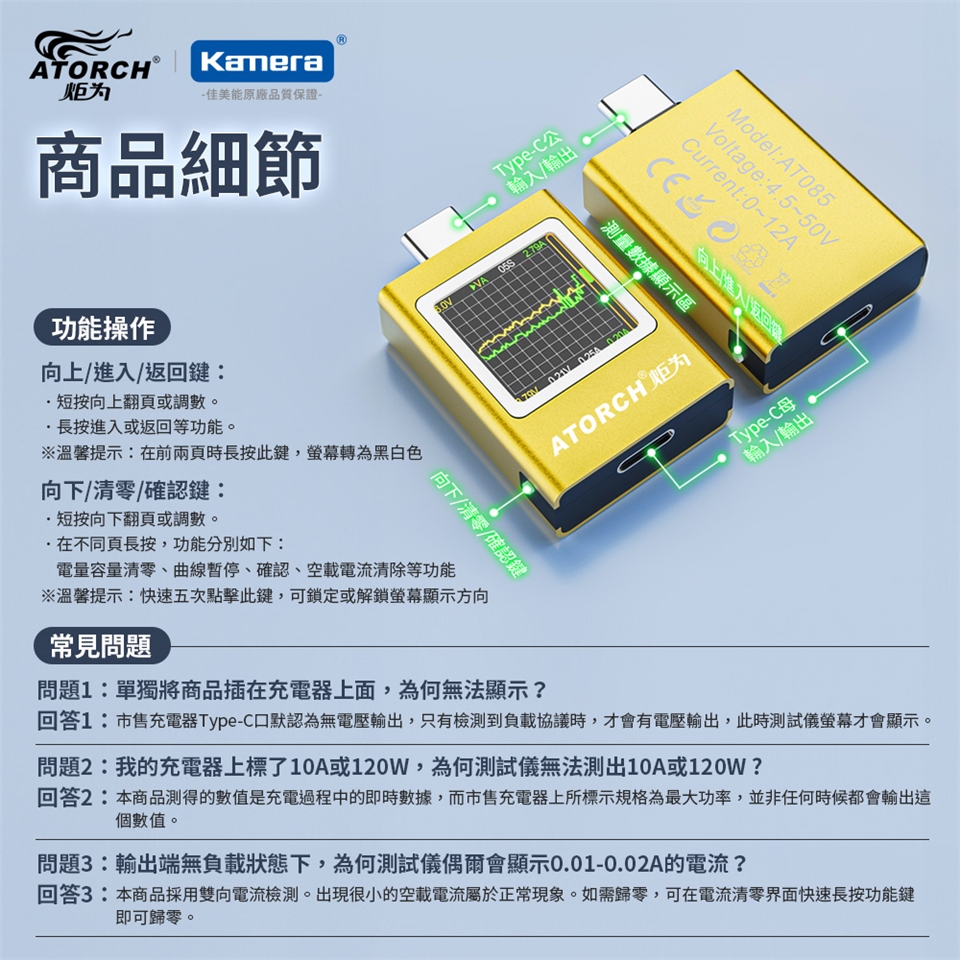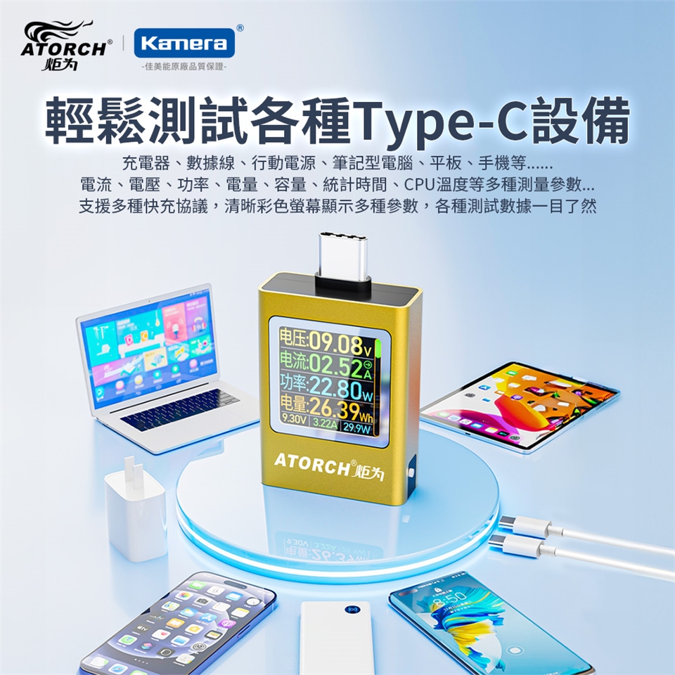- 輕鬆測試各種Type-C設備,充電器、數據線、行動電源、筆記型電腦、平板、手機等......電流、電壓、功率、電量、容量、統計時間、CPU溫度等多種測量參數...支援多種快充協議,清晰彩色螢幕顯示多種參數,各種測試數據一目了然!