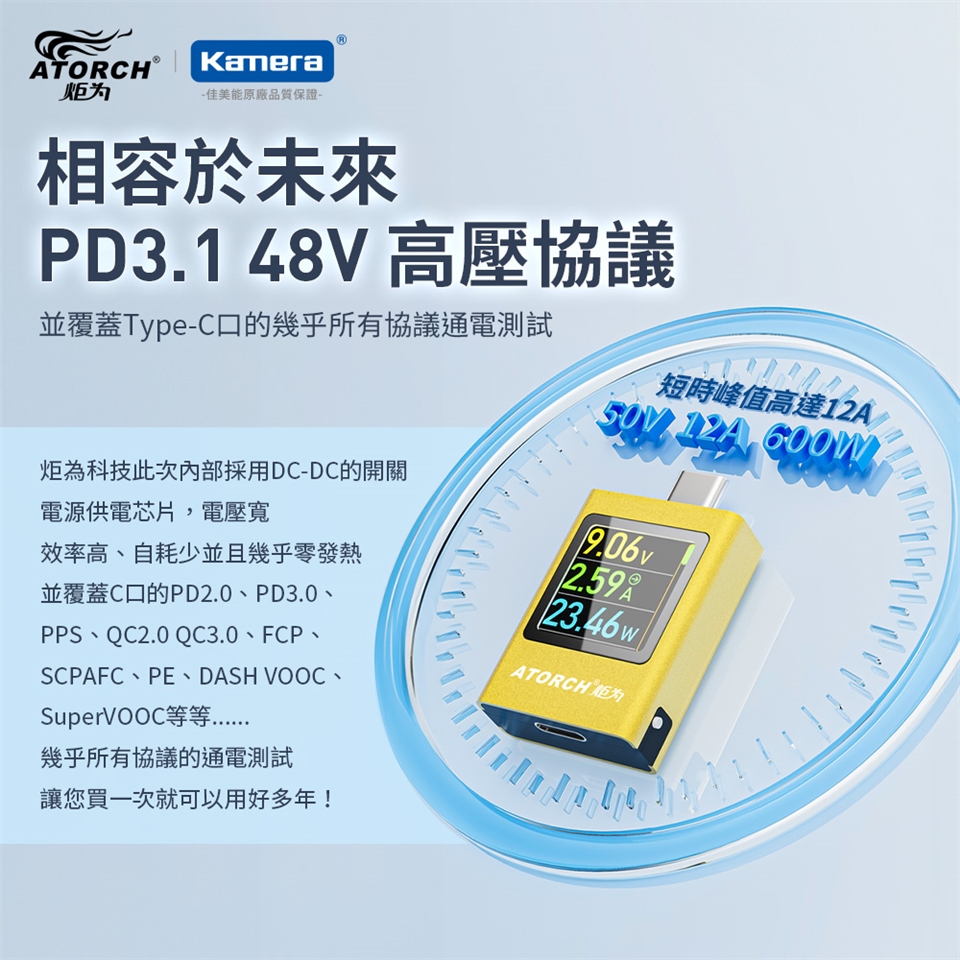 - 相容於未來PD3.1 48V 高壓協議,並覆蓋Type-C口的幾乎所有協議通電測試。