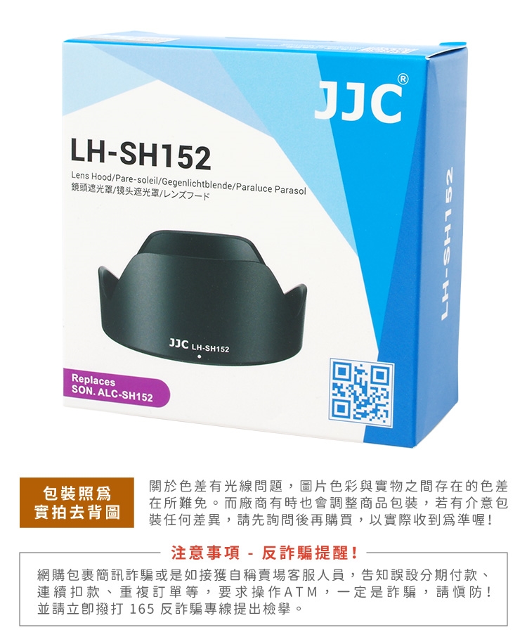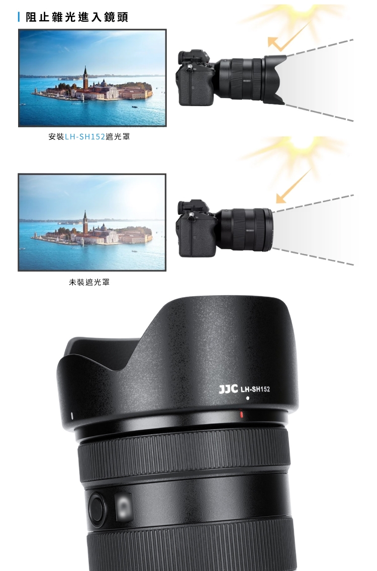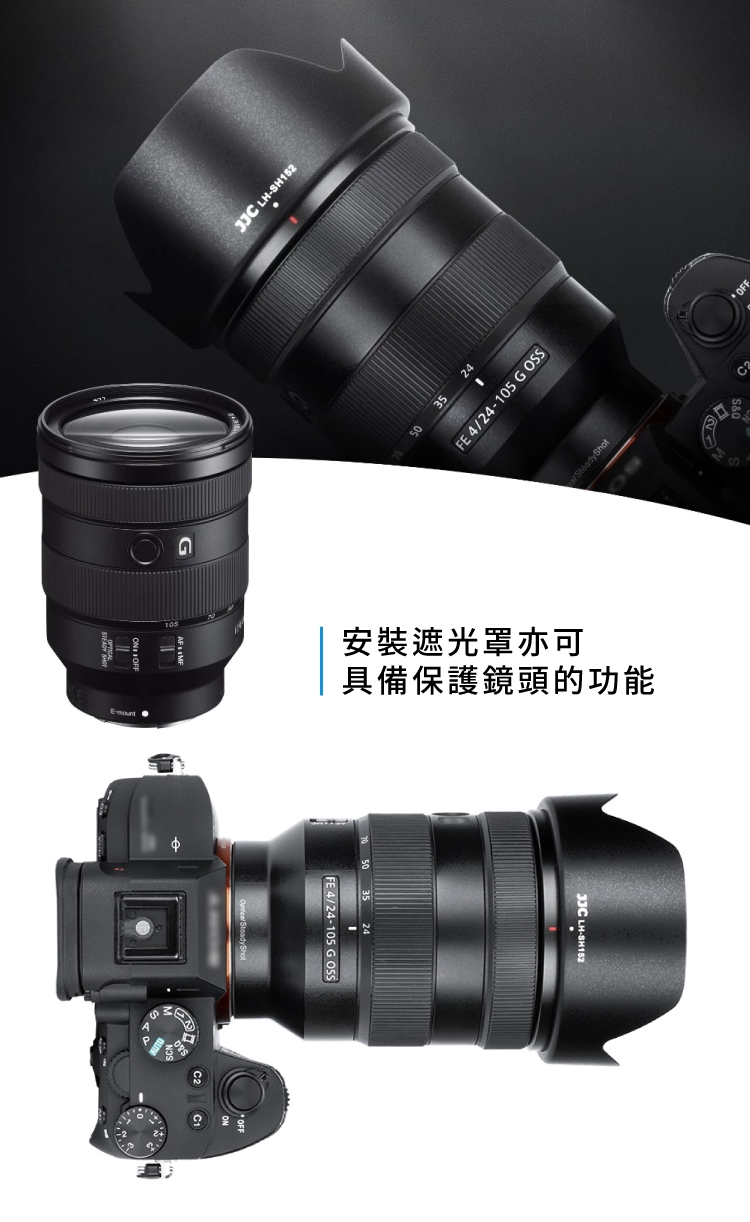 ●【品名】JJC副廠Sony遮光罩相容索尼原廠ALC-SH152遮光罩LH-SH152(適FE 24-105mm F4 G OSS即SEL24105G)太陽罩lens hood