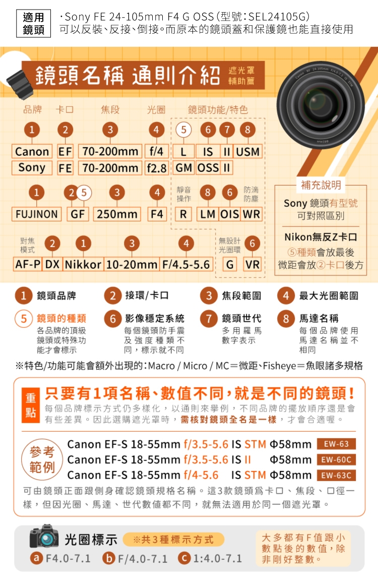 ※其它更多適用鏡頭的說明,請參考賣場內文下方●【適用鏡頭】的說明。