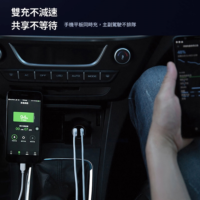 ◎ 支援雙協議快充,雙孔車用充電器