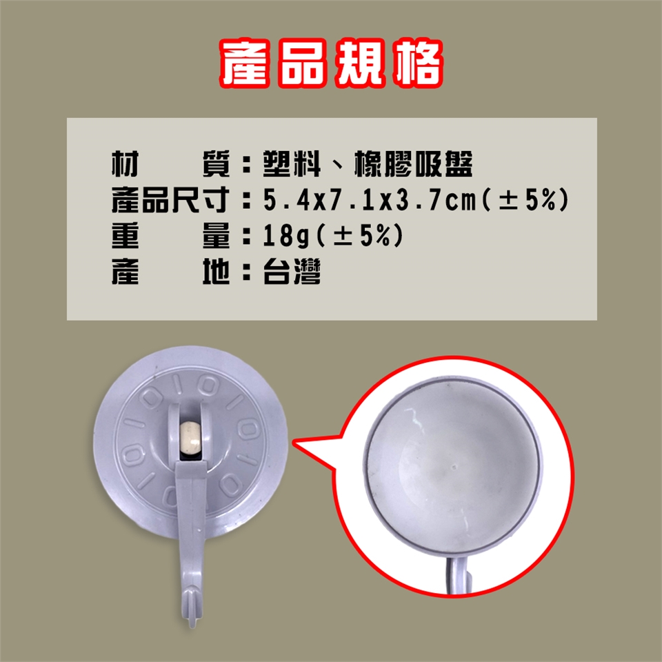 ※ 使用本產品時請確認吸盤是否已穩固吸附,穩固後再吊掛物品,以免掉落