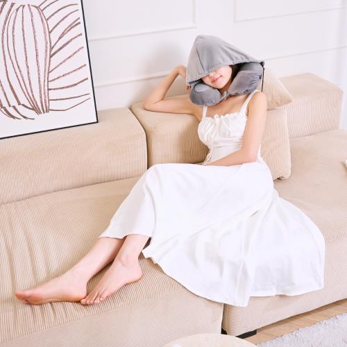 tokuyo 溫熱充氣連帽頸枕 TH-011 (旅行枕/U枕/遮光睡眠枕)