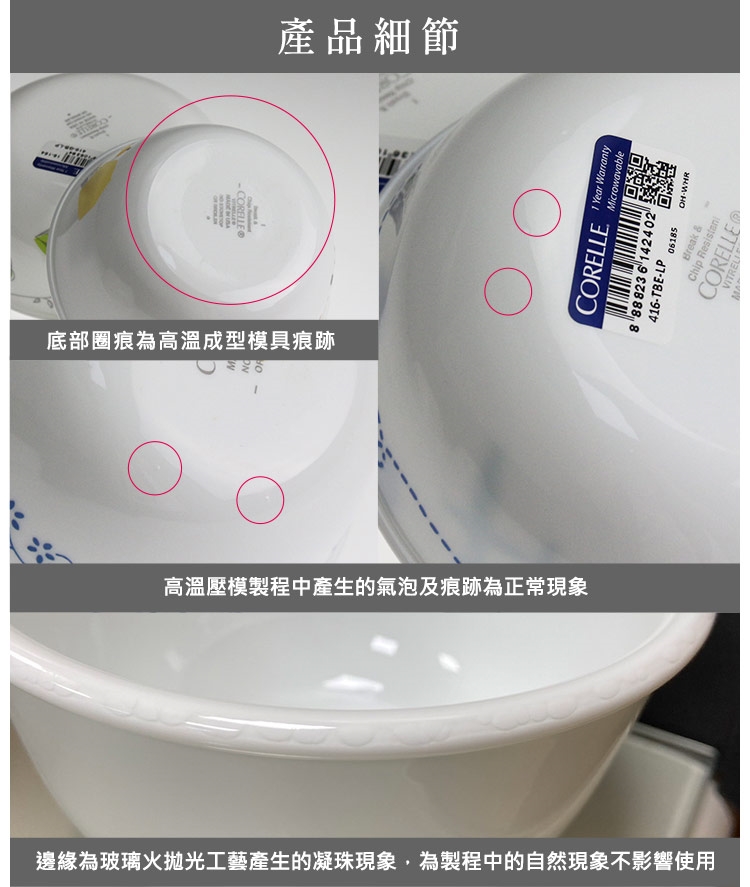 ※新的康寧餐具表面有一層透明的保護層,使用前請先清洗乾淨。