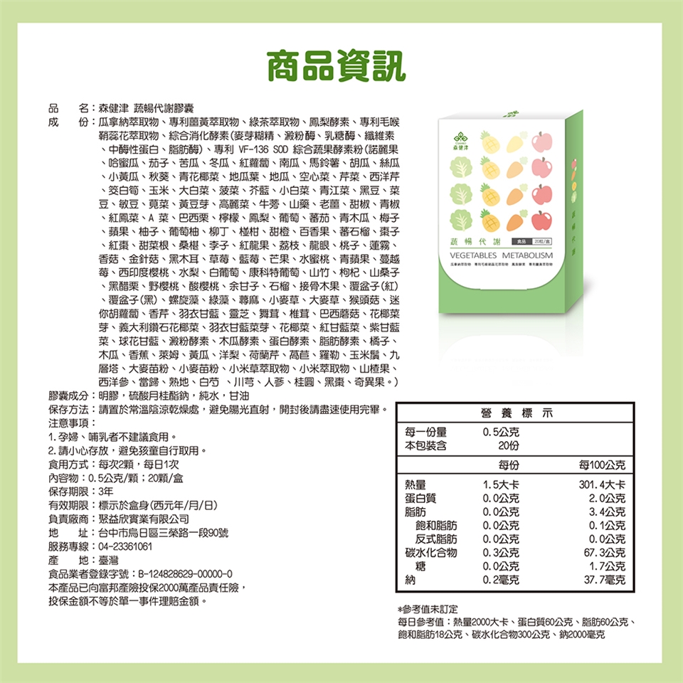 蔬暢代謝:每次2顆,每日1次。
