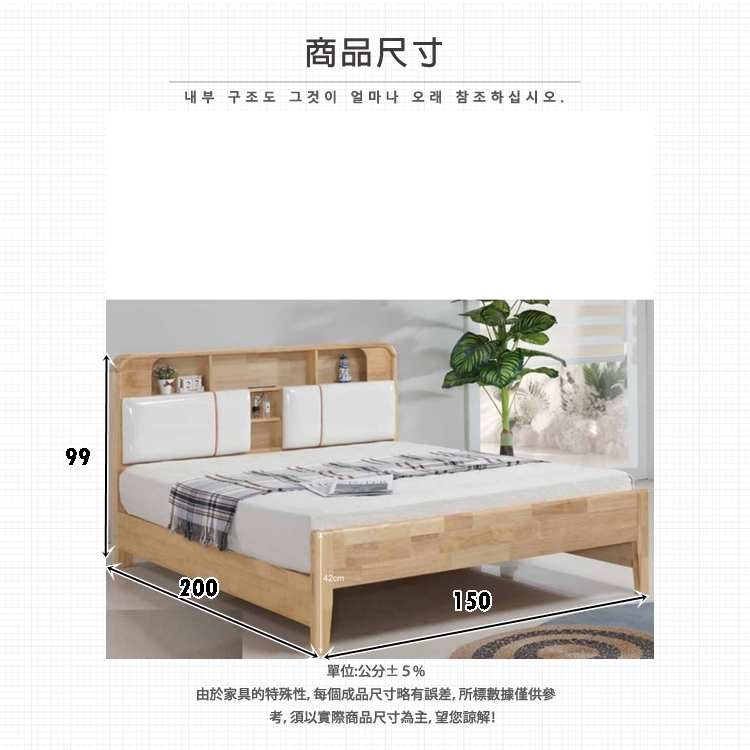 AS雅司-芬克斯實木5尺床-150*200*99cm