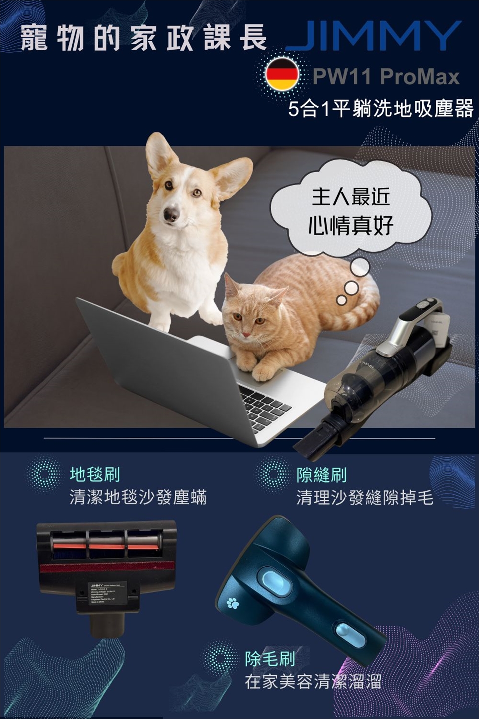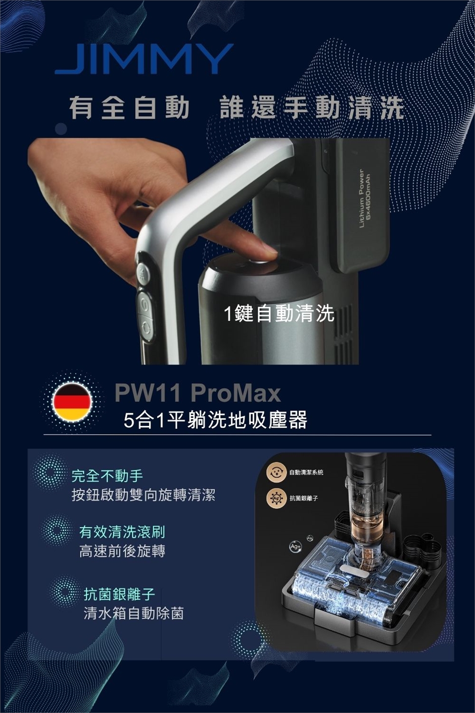 前後雙滾刷加倍清潔效率,吸塵、拖地一次到位
