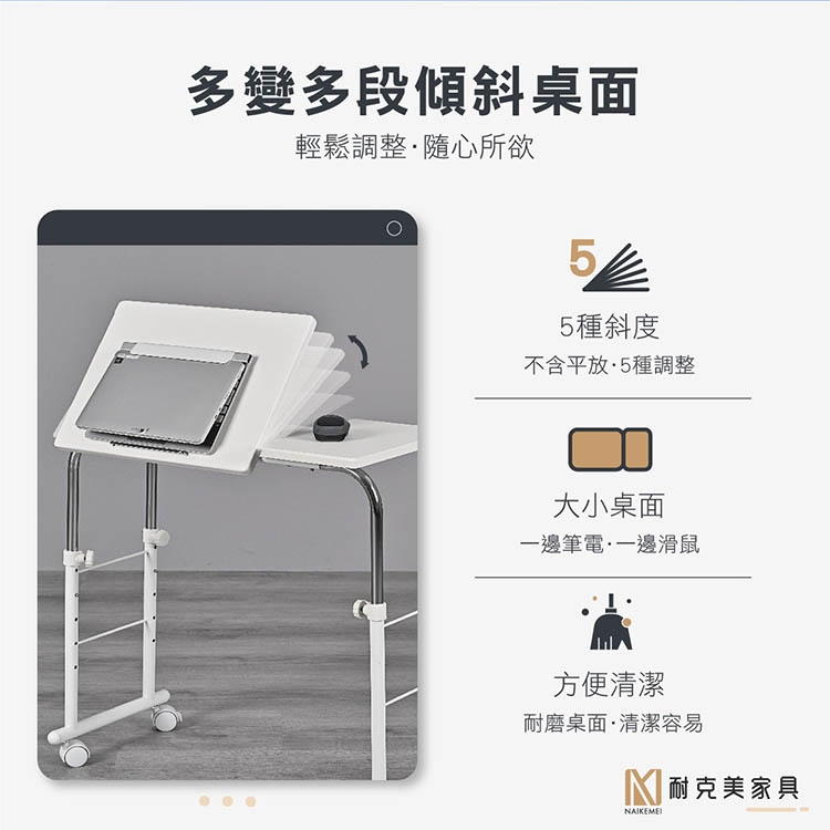 簡易組裝,隨意移動,多段升降,多段斜度調整。
